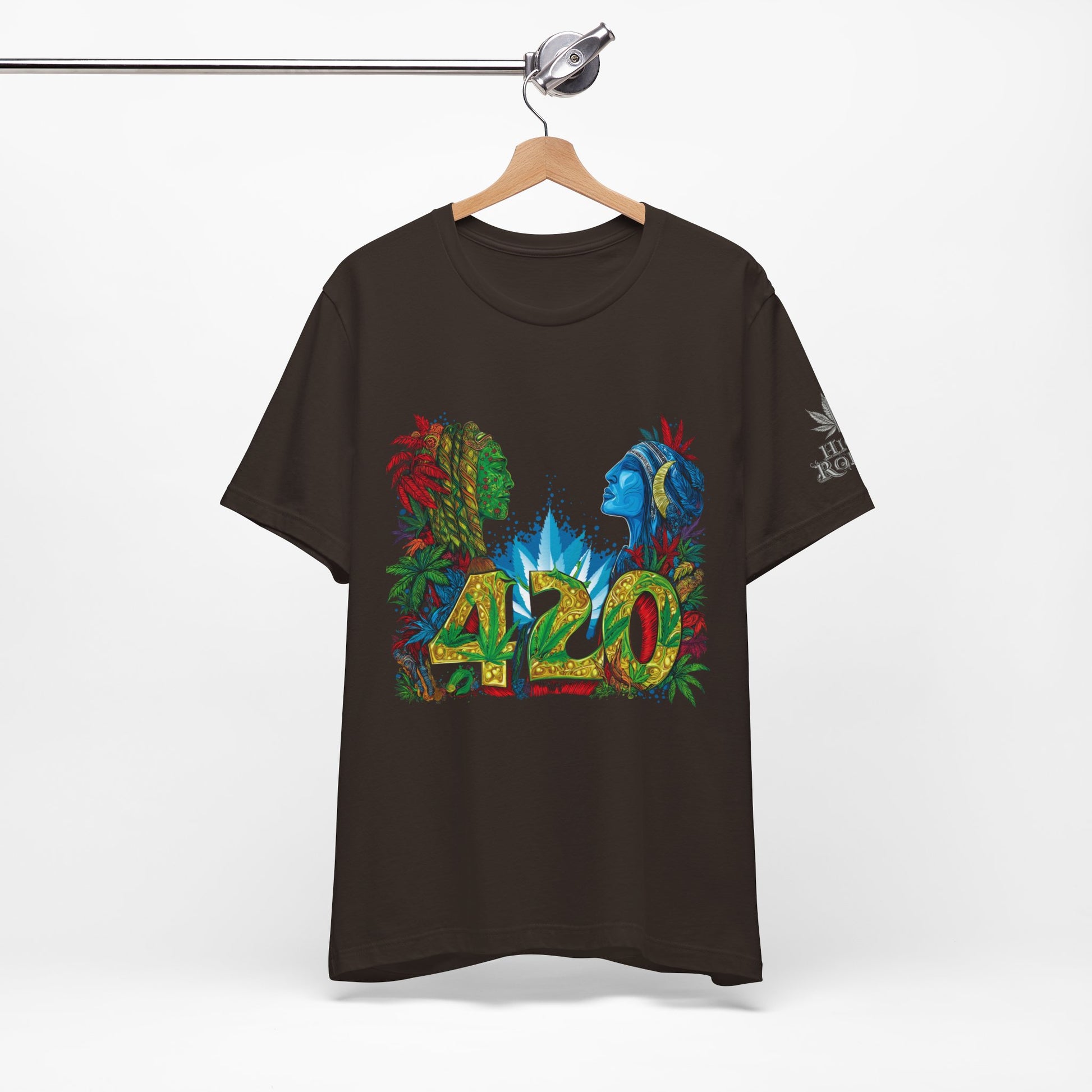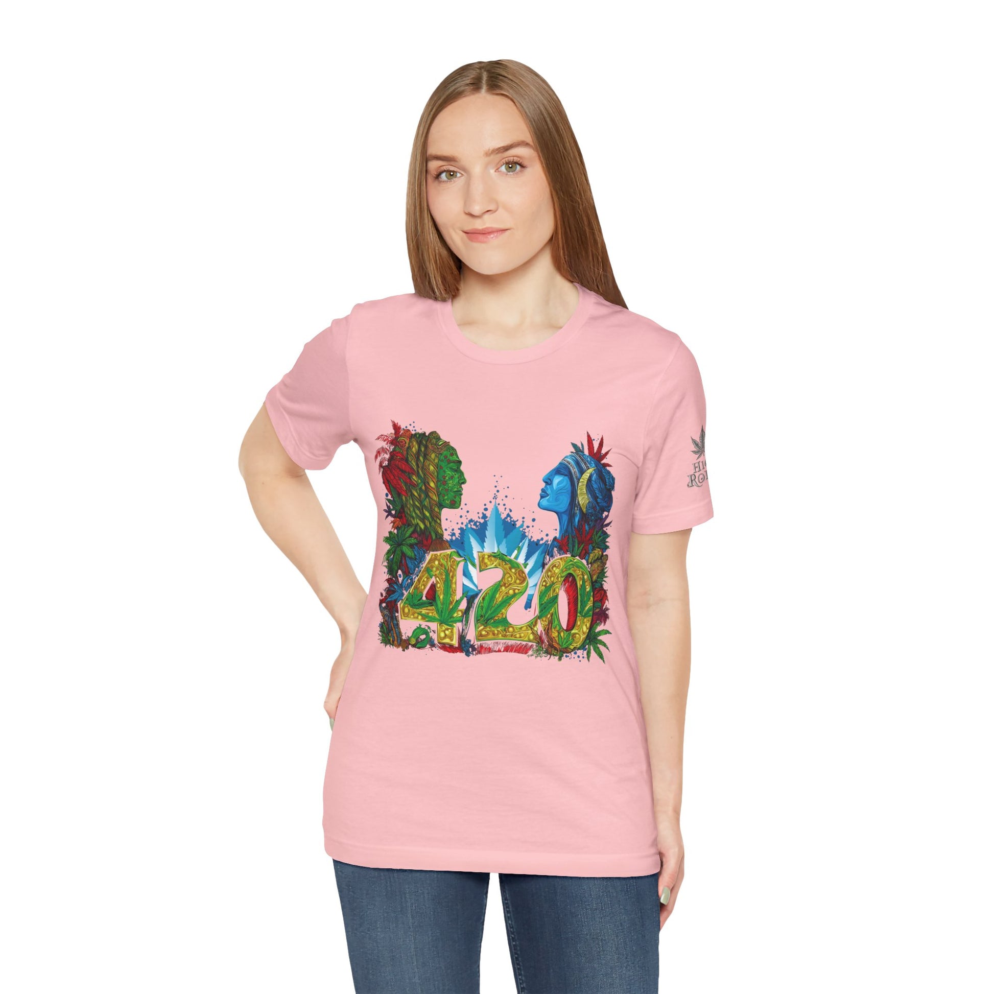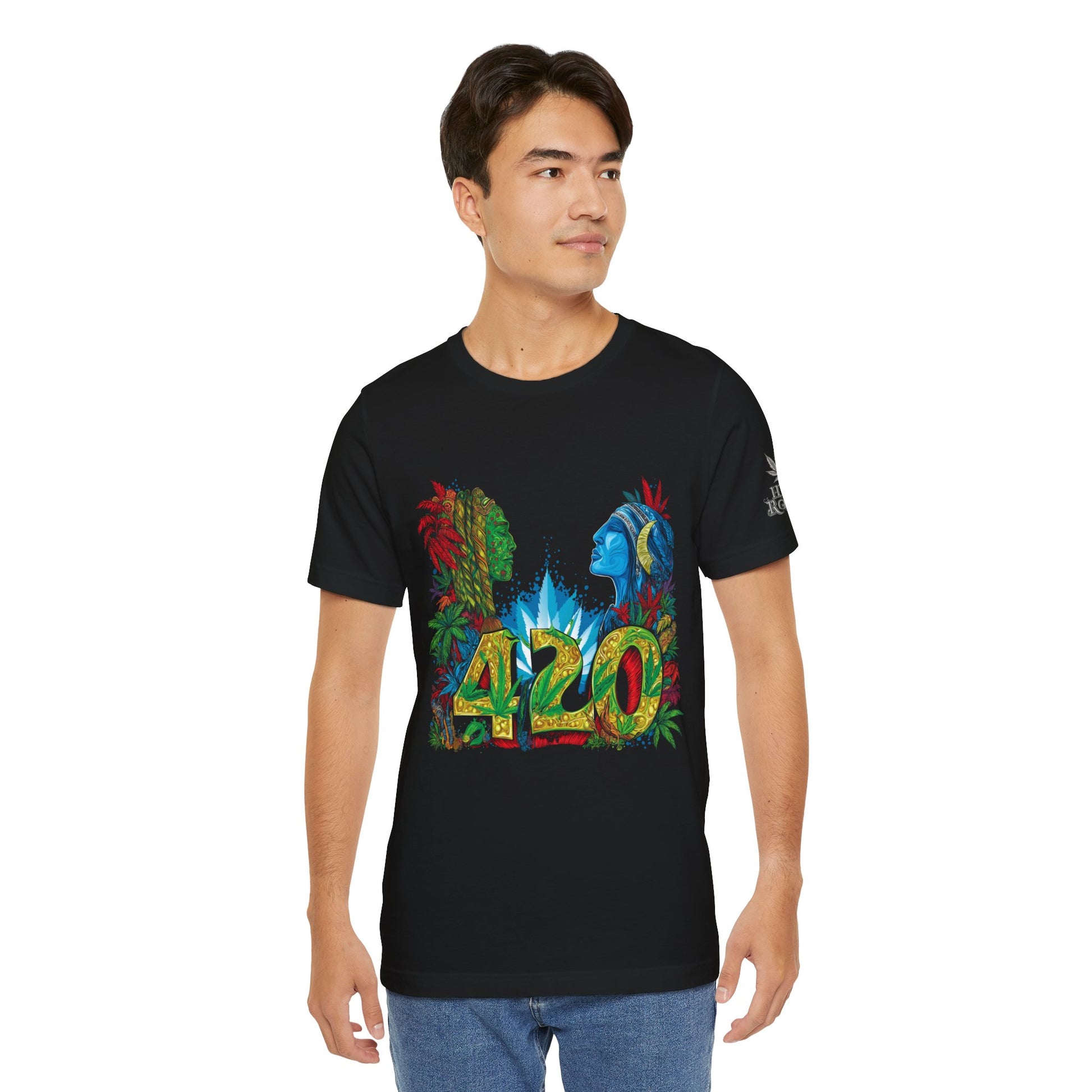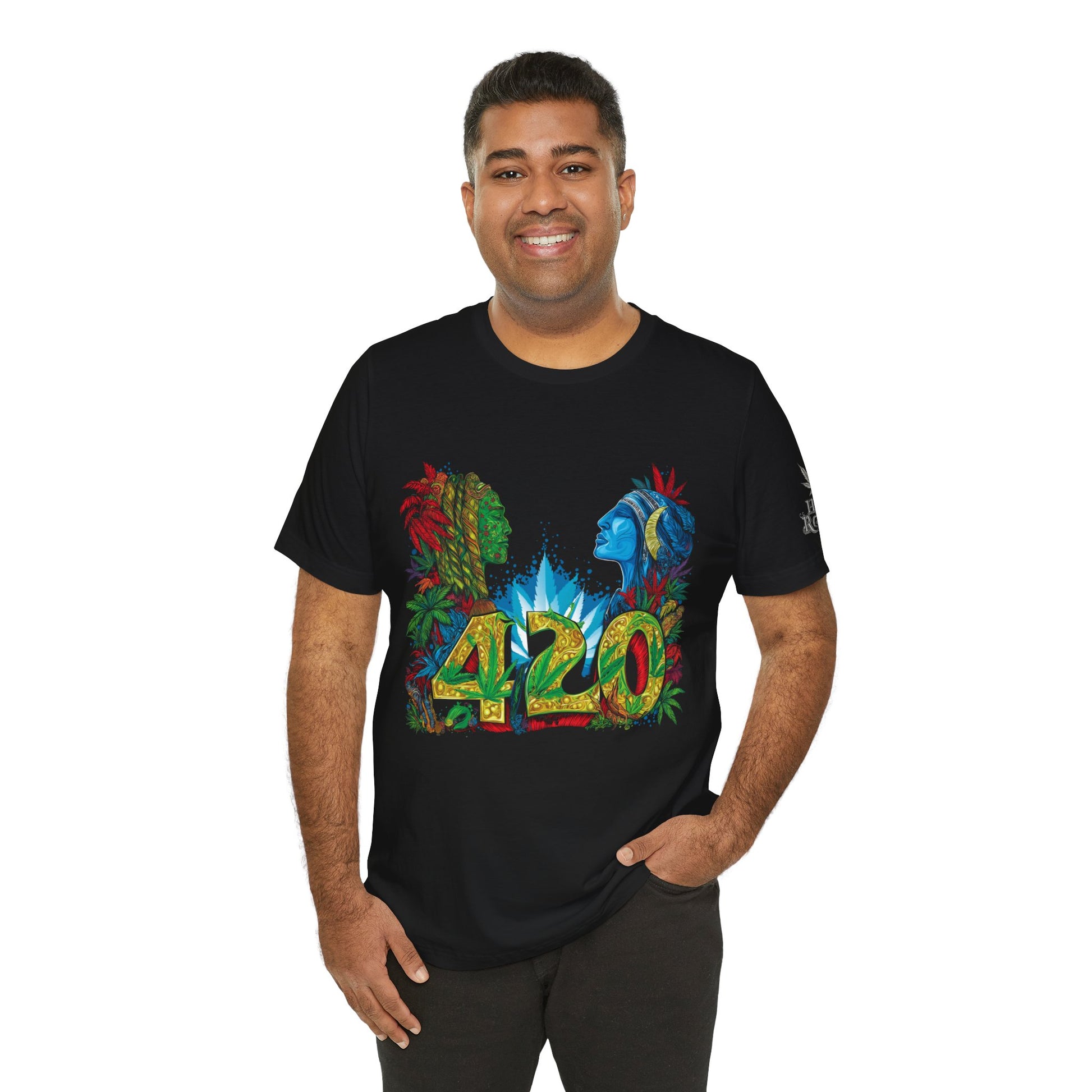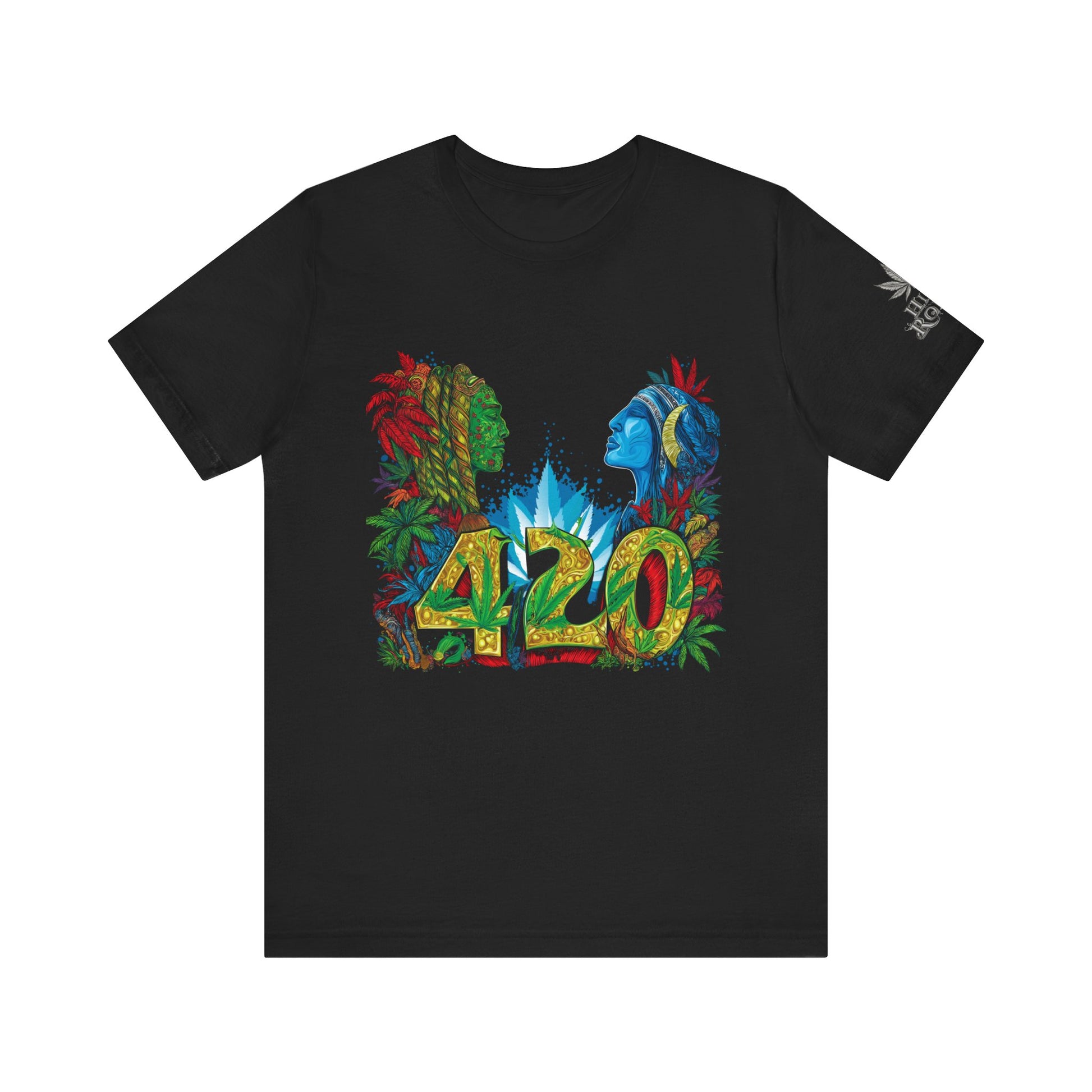 420 Celebration Premium Cannabis Culture T-Shirt - Dual Profile Art With Nature Elements And Bold 420 Typography