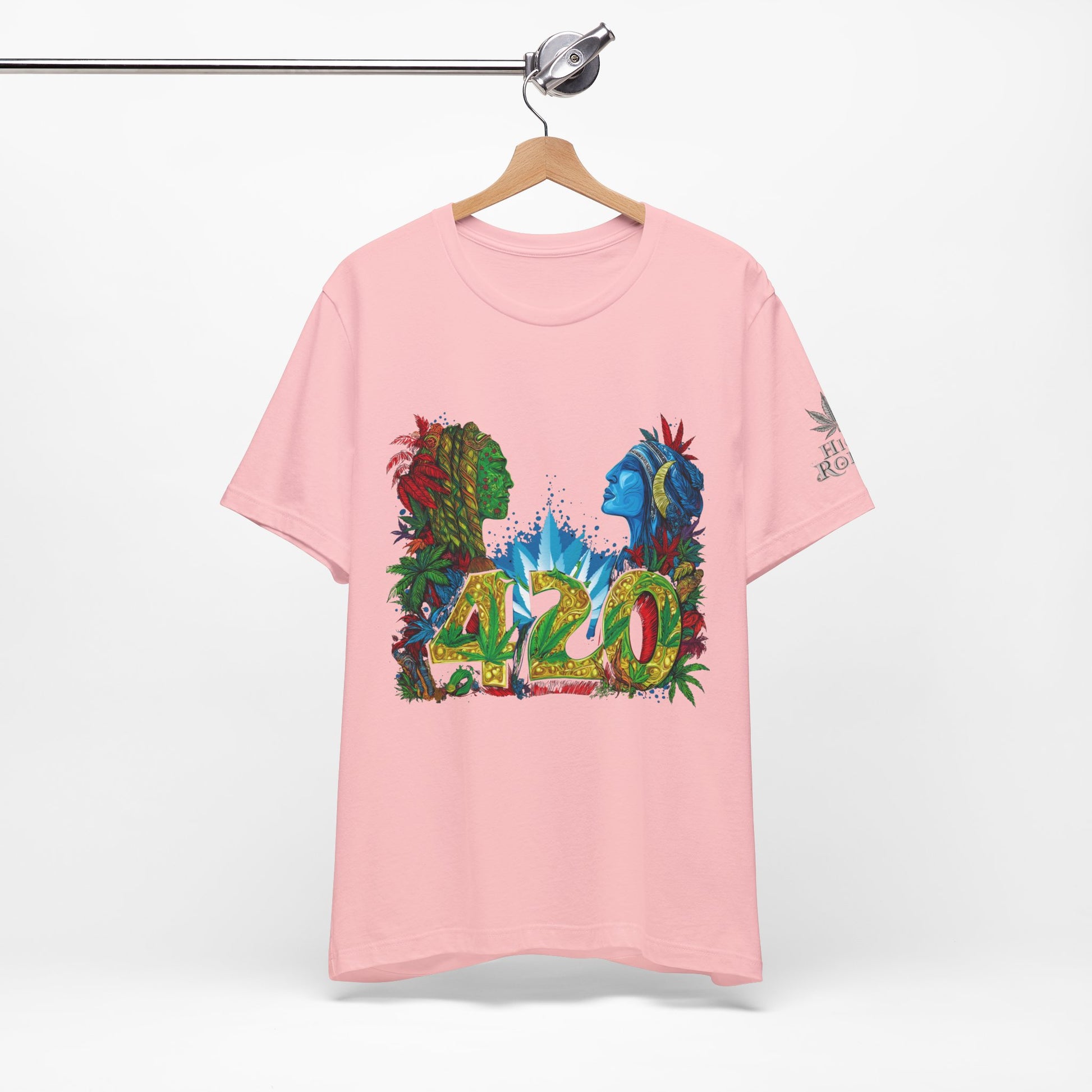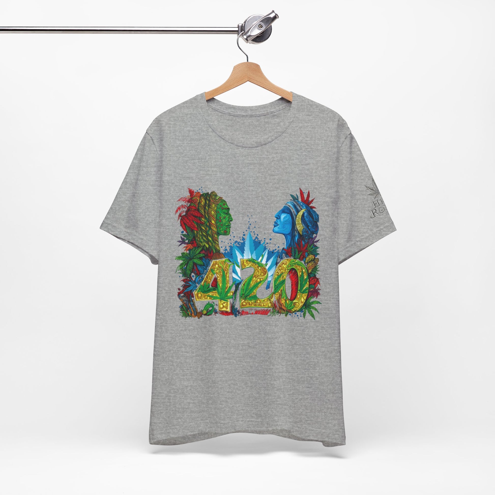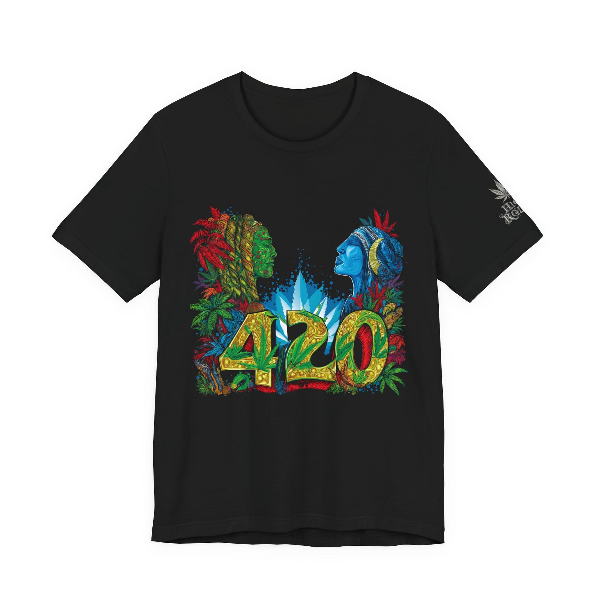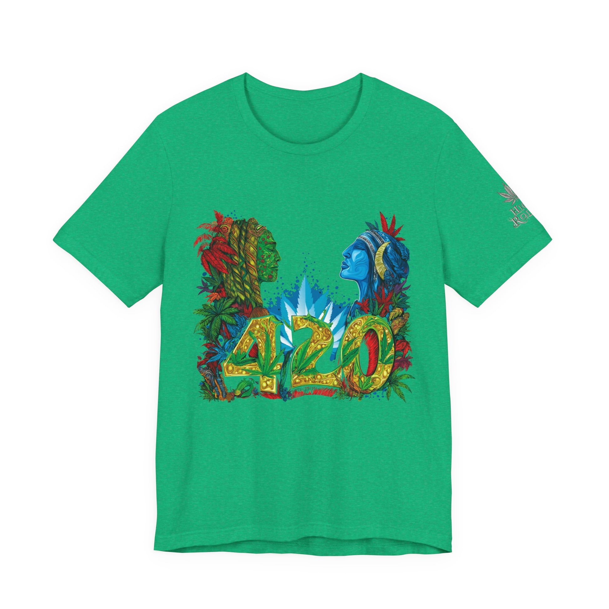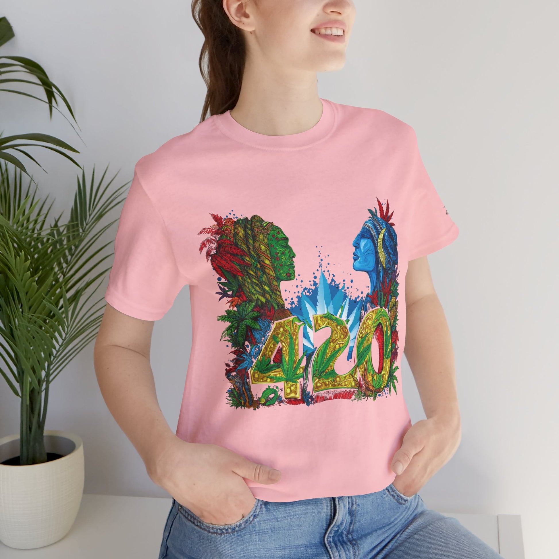 420 Celebration Premium Cannabis Culture T-Shirt - Dual Profile Art With Nature Elements And Bold 420 Typography