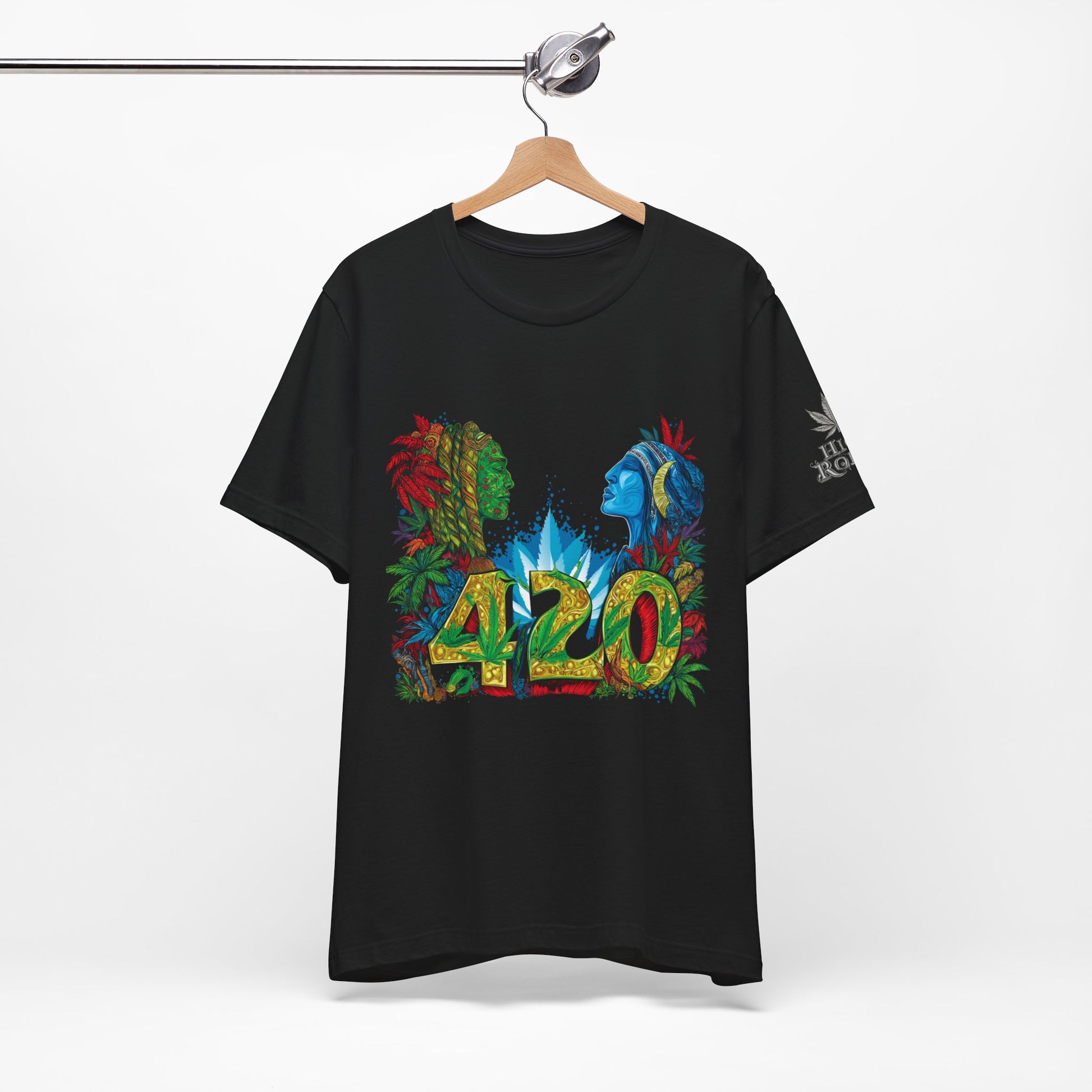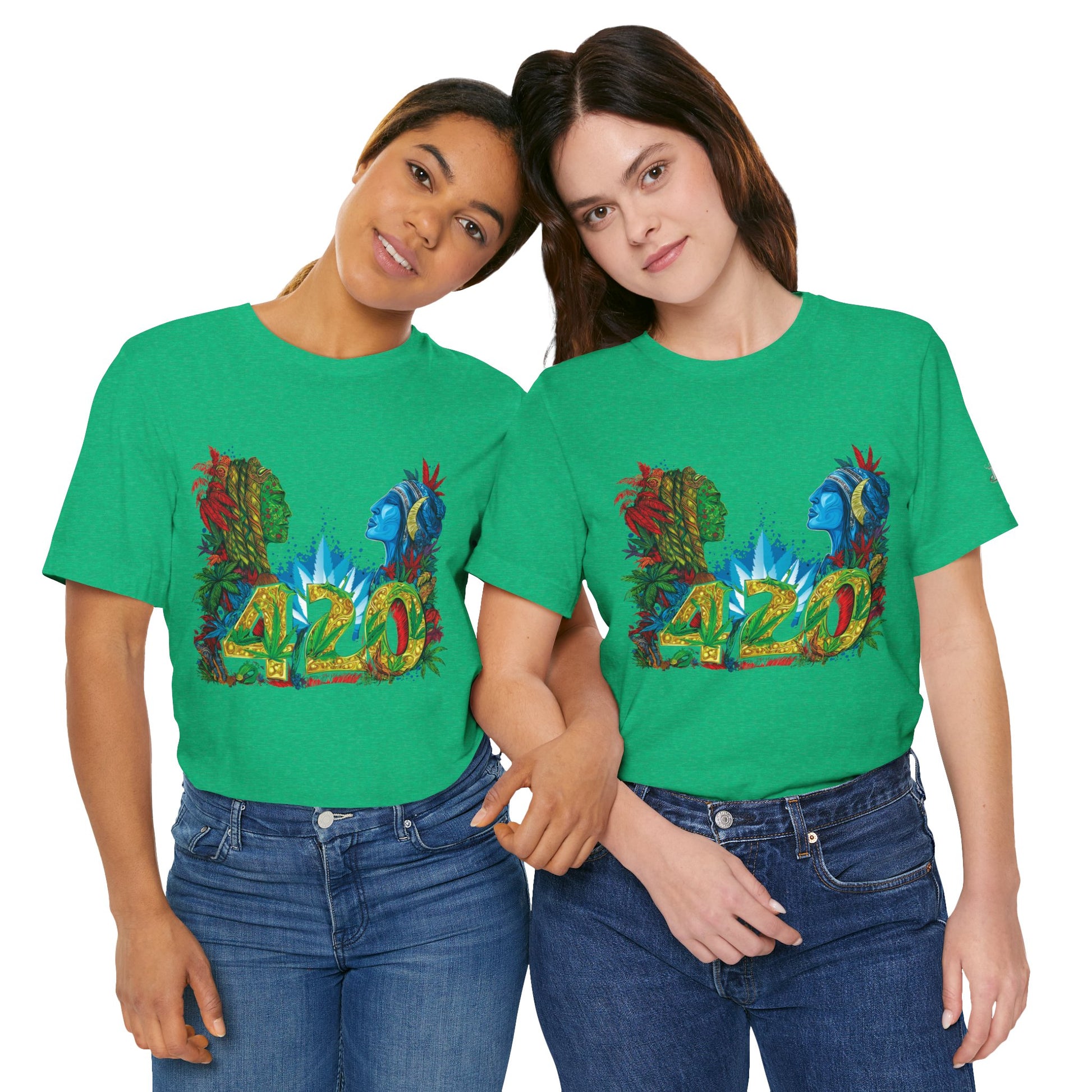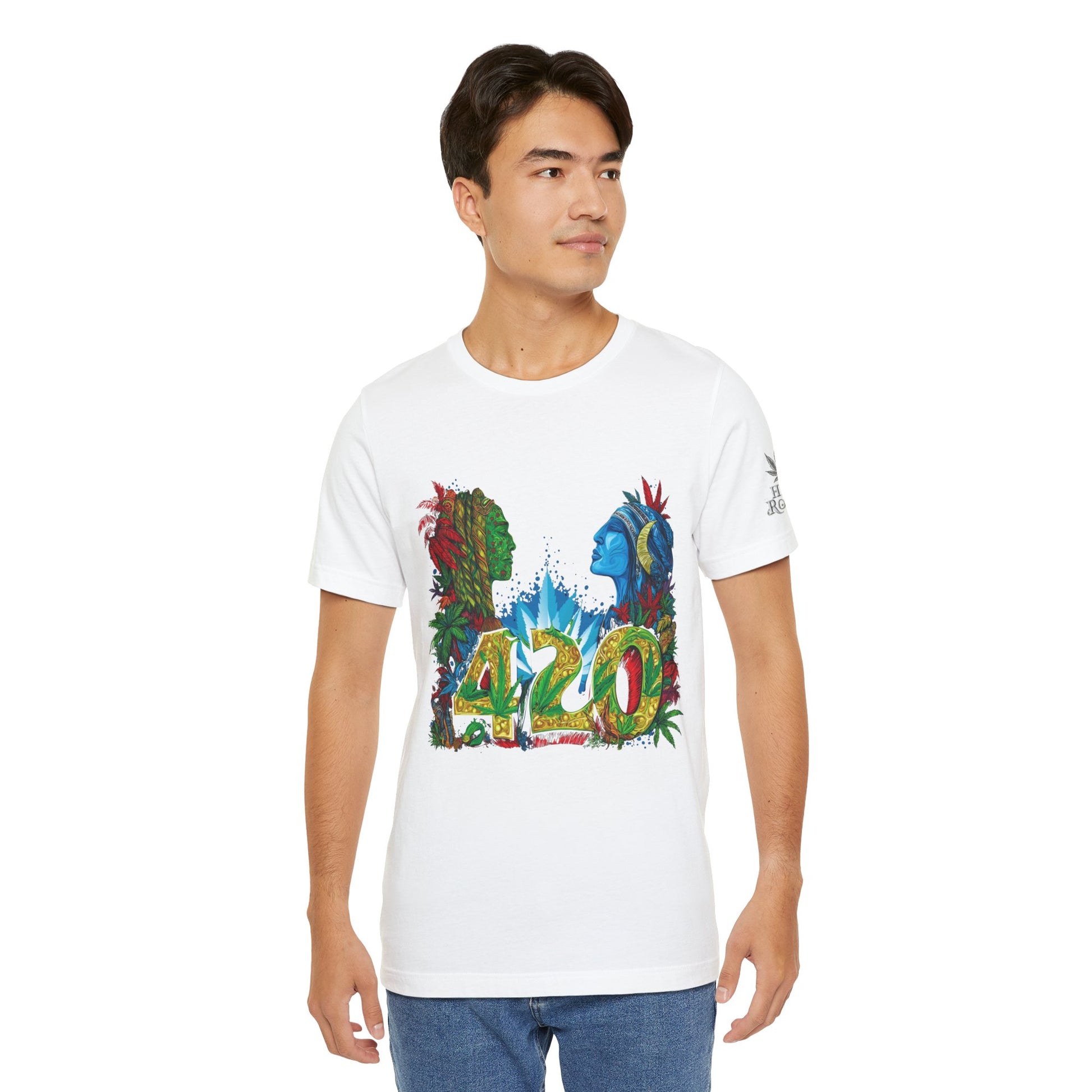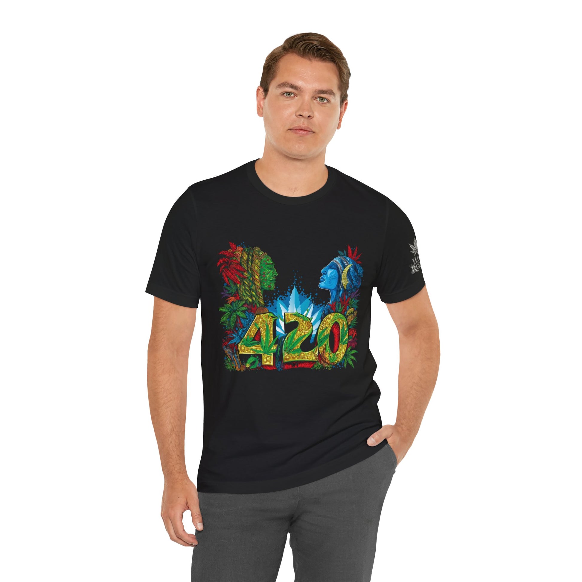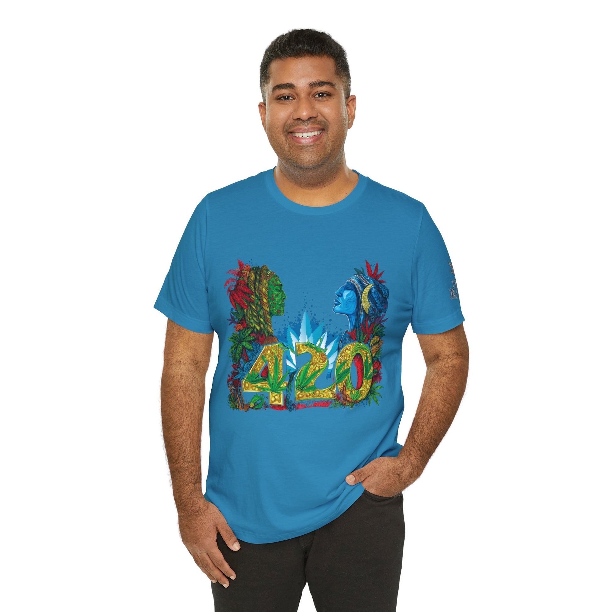420 Celebration Premium Cannabis Culture T-Shirt - Dual Profile Art With Nature Elements And Bold 420 Typography