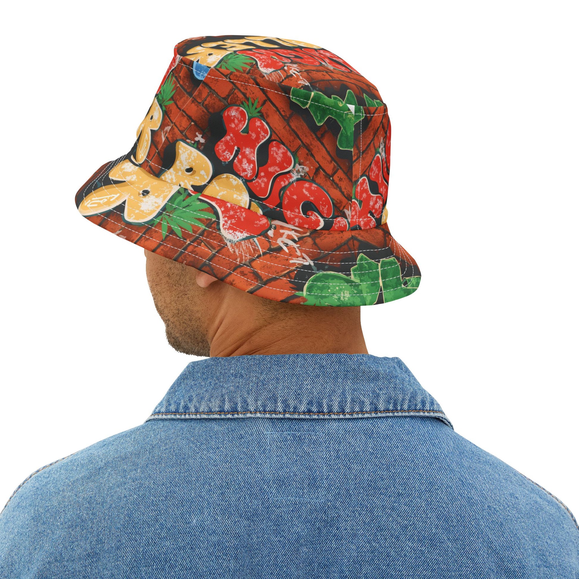 "High Roller" Graffiti Brick Wall Bucket Hat - Urban Street Art Fashion Accessory
