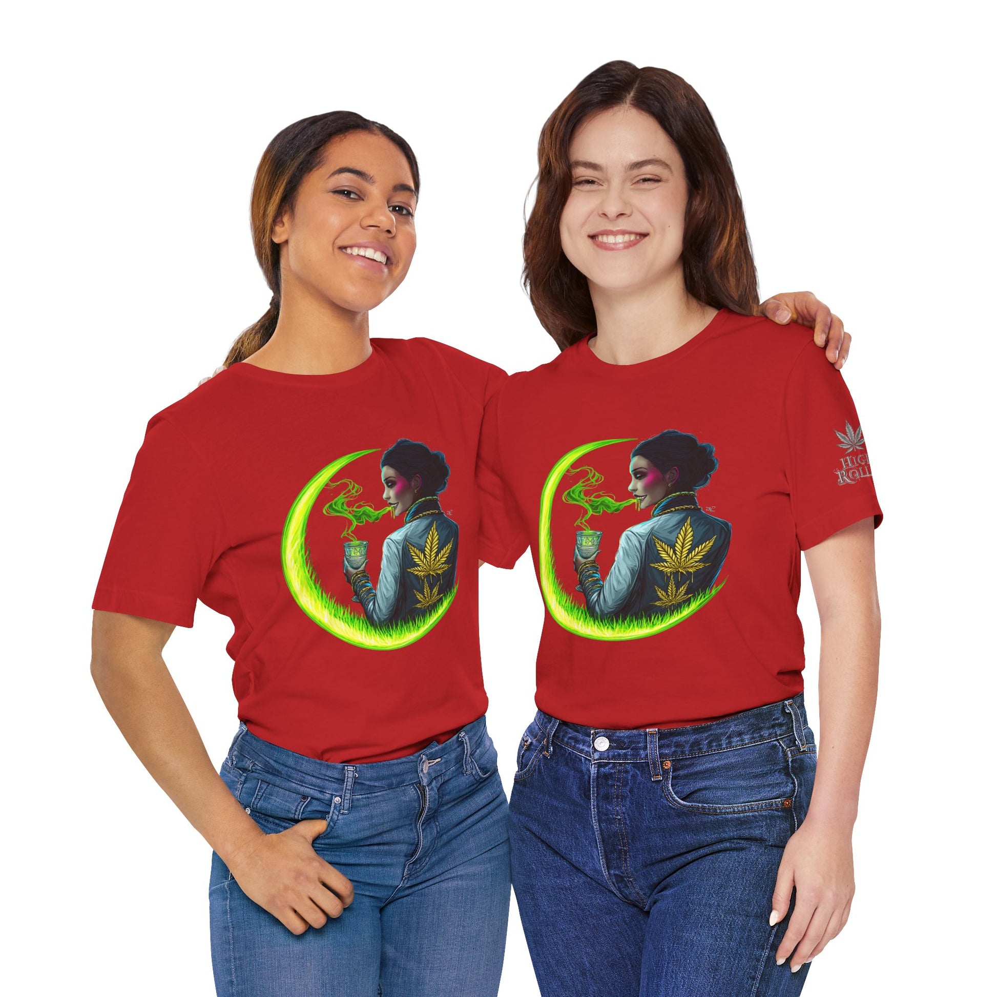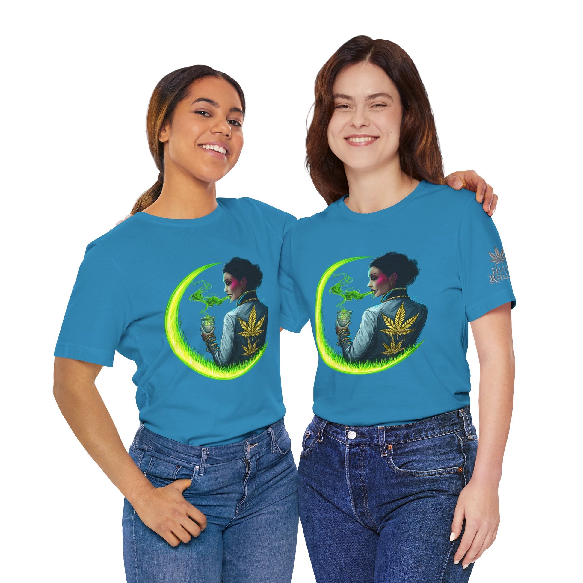 Constructed from ultra-premium Bella+Canvas Airlume combed and ring-spun cotton, this shirt delivers royal softness befitting a cannabis queen, with a fabric weight that provides perfect coverage while maintaining breathability for both revolution and relaxation. The advanced DTG printing technology ensures every regal detail shines with clarity, from the textured beauty of her natural hair to the hypnotic smoke patterns that seem to carry ancestral wisdom on their currents. The contemporary unisex fit with side-seamed construction creates a flattering silhouette that works equally well at social justice gatherings or sophisticated cannabis events, while the tear-away label ensures nothing disturbs your ascension to cannabis royalty during those legendary elevation sessions.