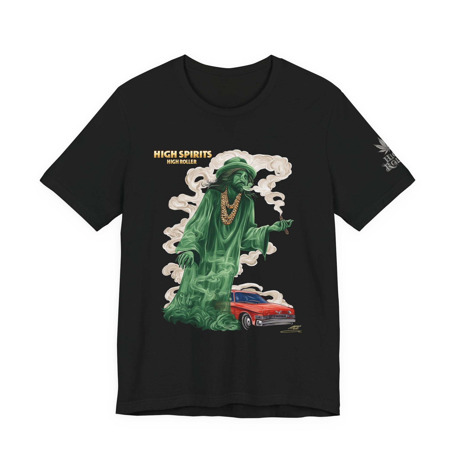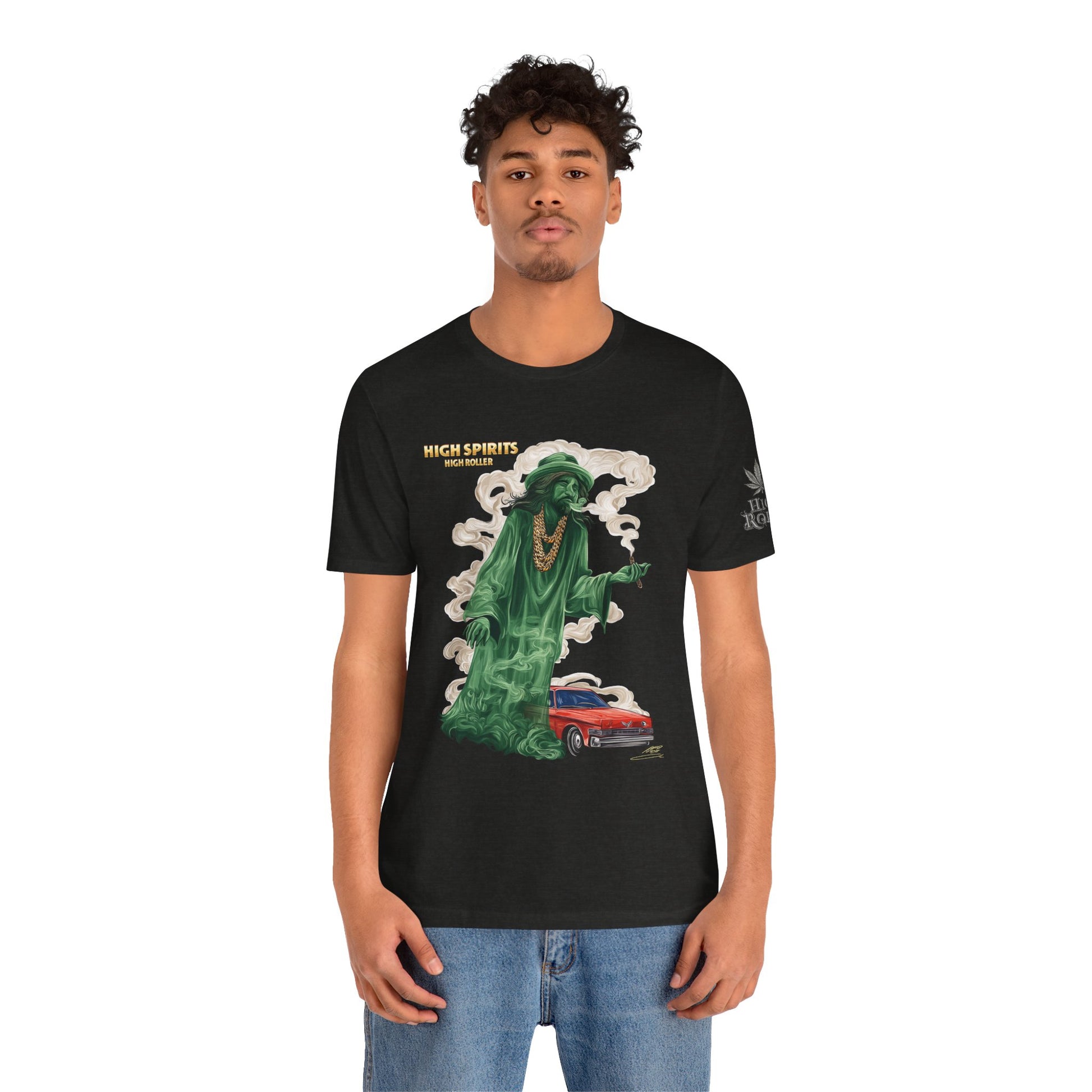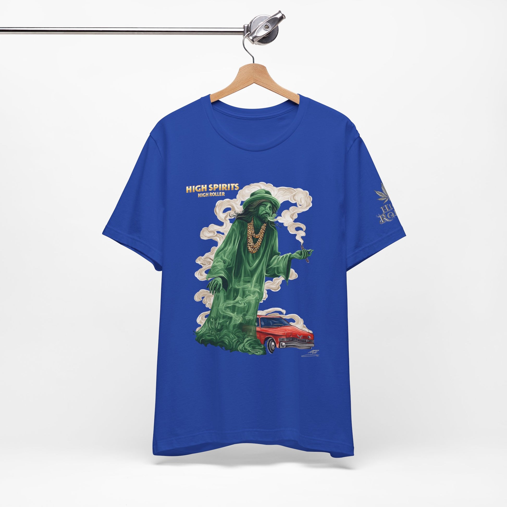 High Spirits HIGH ROLLER Halloween Cannabis Ghost T-Shirt - Premium Spectral Lowrider Phantom 420 Apparel