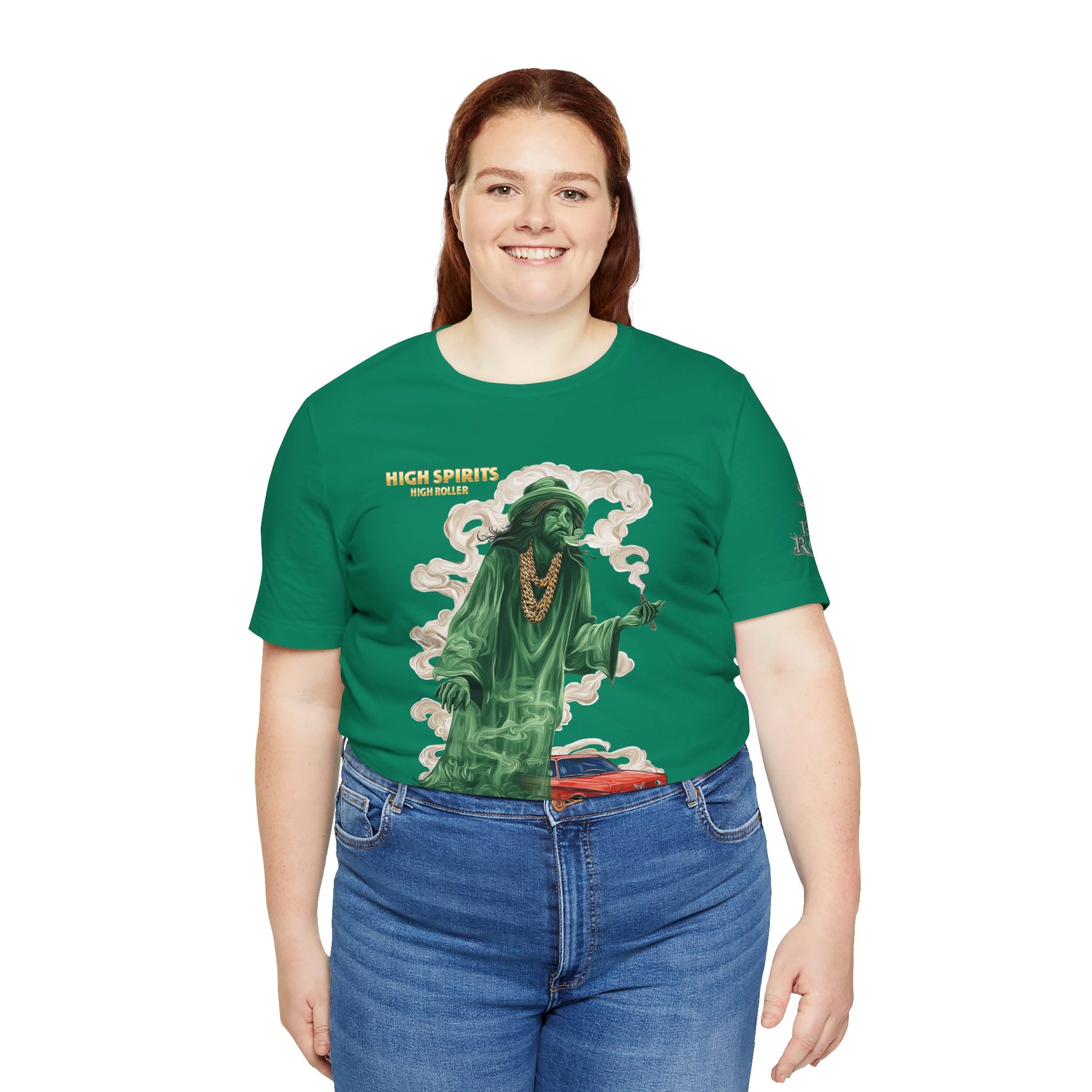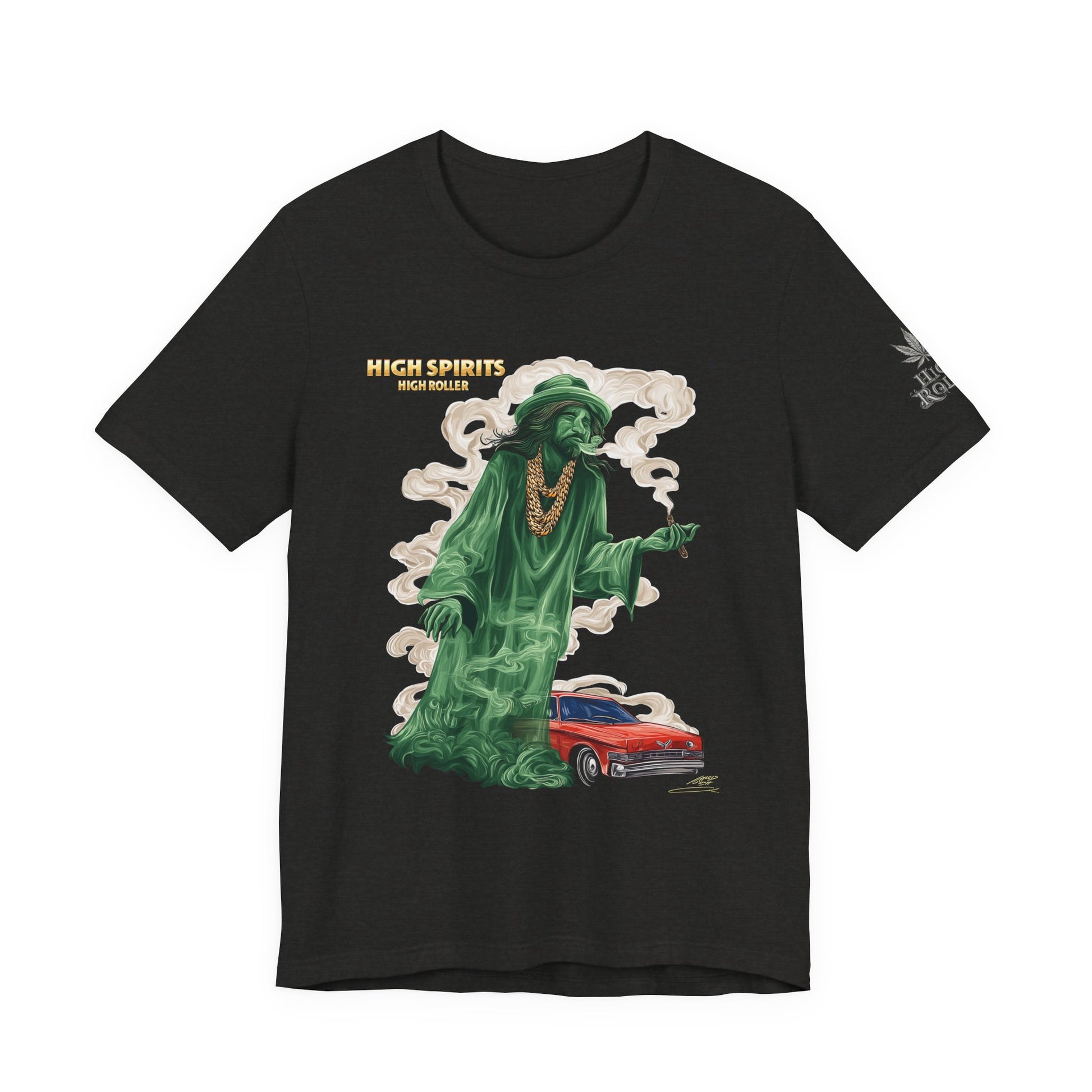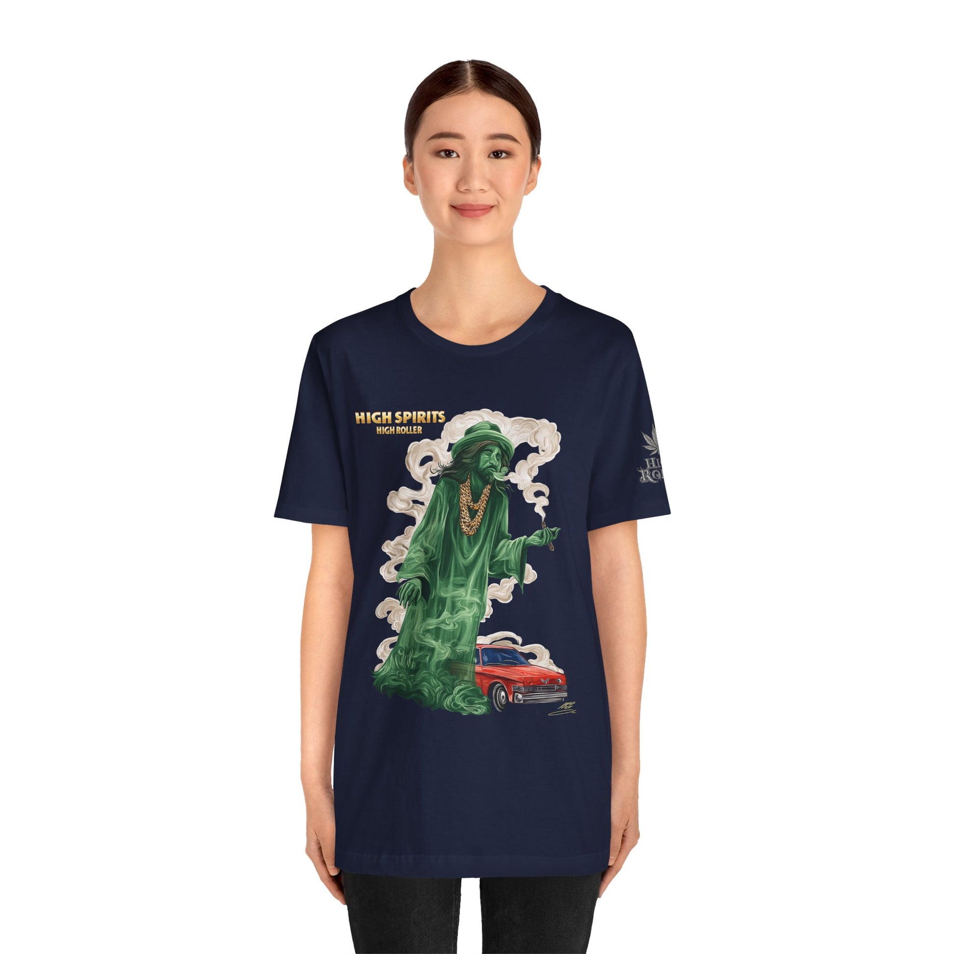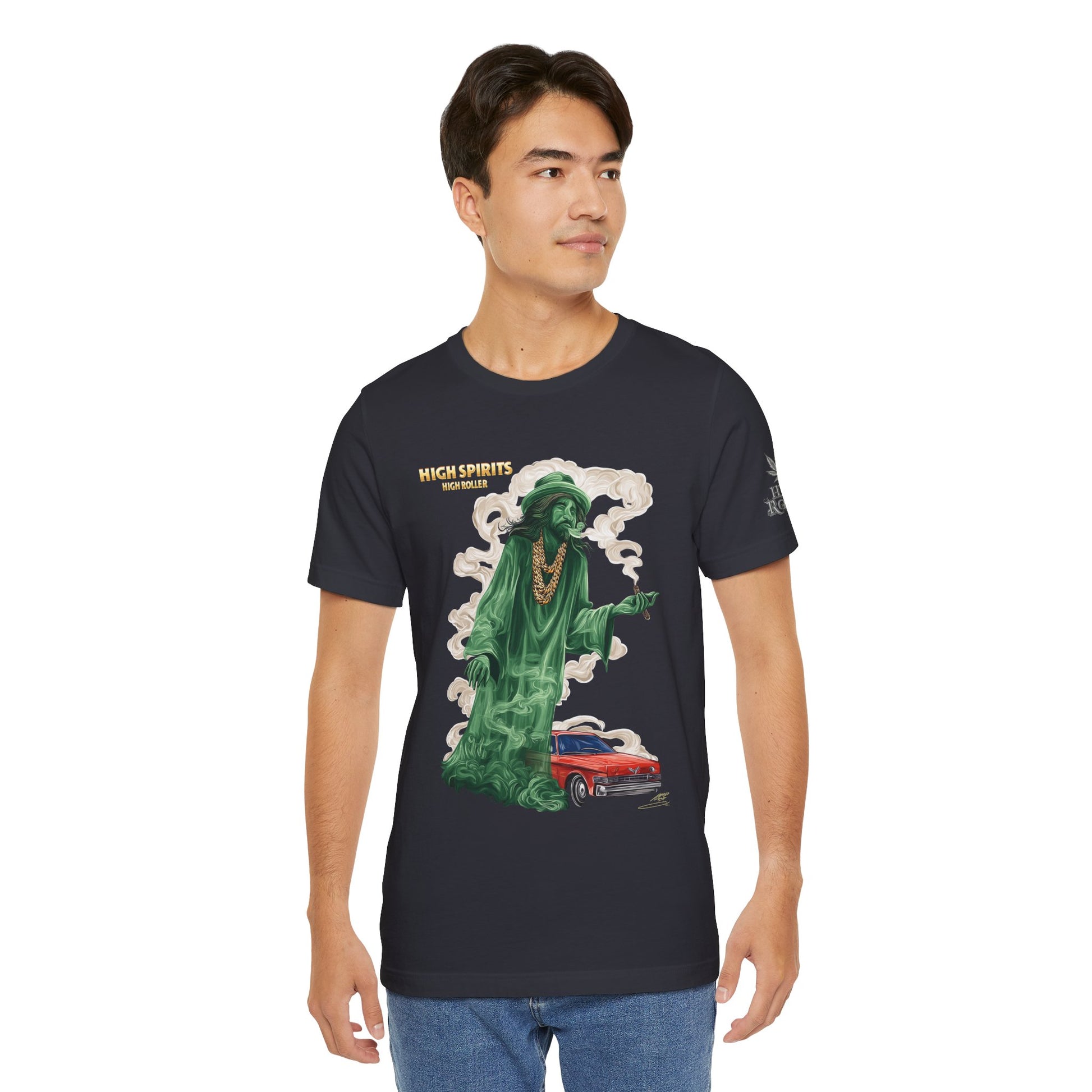 High Spirits HIGH ROLLER Halloween Cannabis Ghost T-Shirt - Premium Spectral Lowrider Phantom 420 Apparel