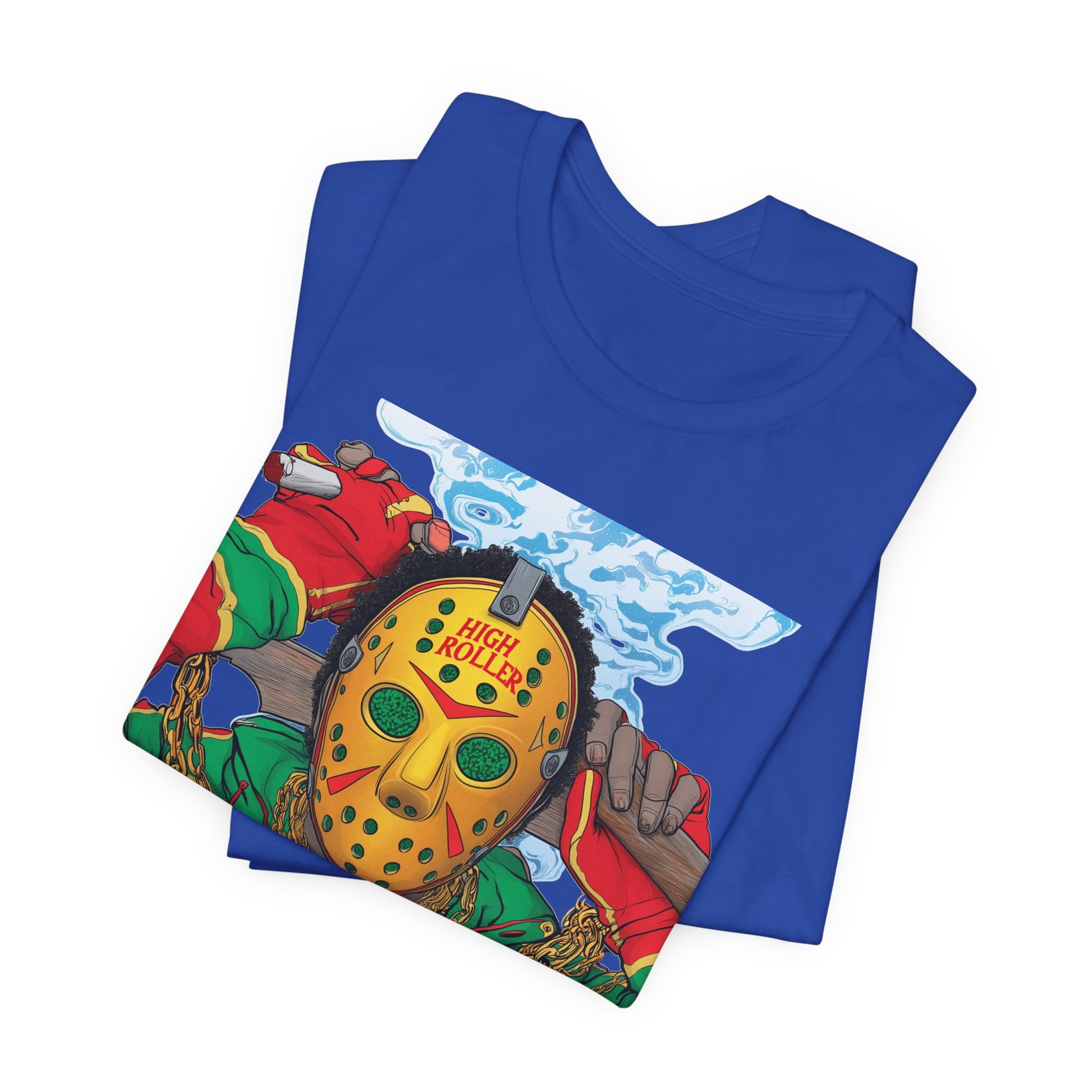 Horror Icon HIGH ROLLER T-Shirt - Premium Cannabis Slasher Culture Apparel"
